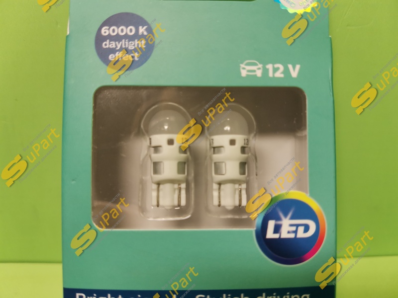 Лампы светодиодные Philips Ultinon LED W5W (T10) 6000K 11961ULWX2 2шт. / PHILIPS