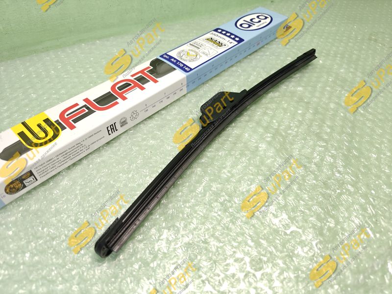 Щетка стеклоочистителя (350 мм) бескаркасная ALCA Super Flat / ALCA Для бескаркасных щеток стеклоочистителя ALCA Super Flat используется графитовое покрытие для особенно бесшумной работы. Нет замораживания и примыканий, равномерное давление на стекло. В комплекте вложено крепление крючок HOOK.