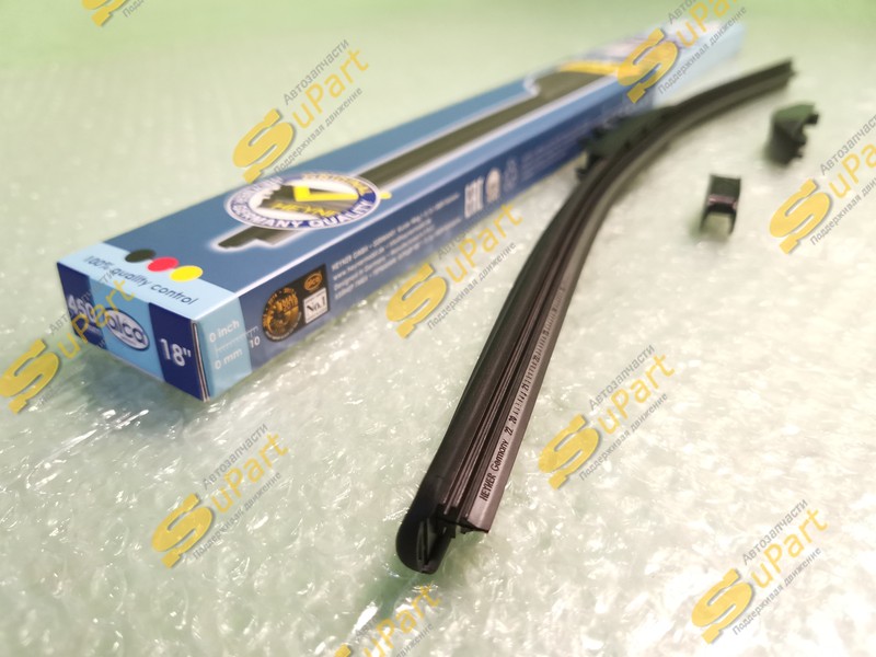 Щетка стеклоочистителя (450 мм) бескаркасная ALCA Super Flat / ALCA Для бескаркасных щеток стеклоочистителя ALCA Super Flat используется графитовое покрытие для особенно бесшумной работы. Нет замораживания и примыканий, равномерное давление на стекло. В комплекте вложено крепление крючок HOOK.